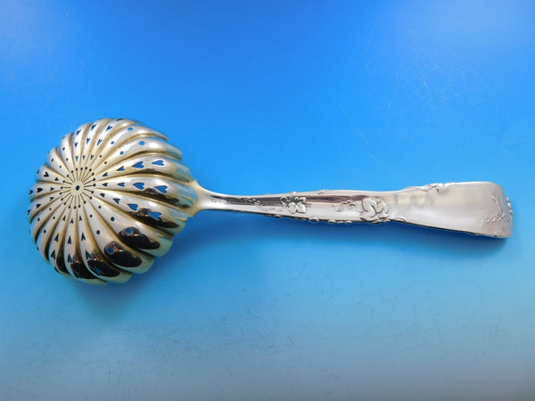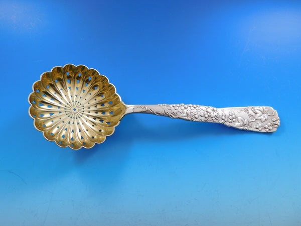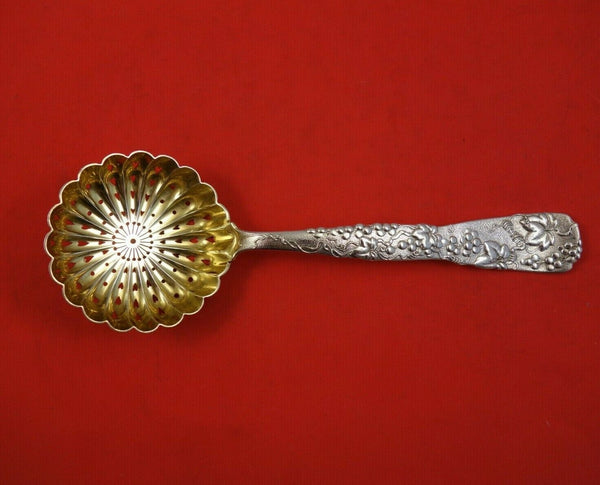 Gorgeous sterling silver Pea Spoon with Gold Washed bowl, pierced with hearts, with Grape Motif handle 8 7/8" in the multi-motif pattern Vine by Tiffany and Co. It is not monogrammed and is in excellent condition.