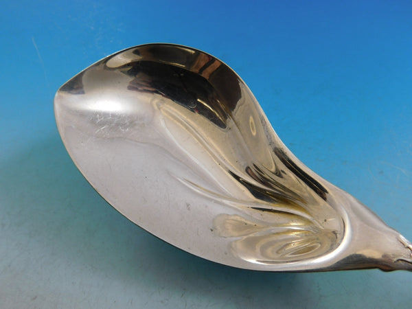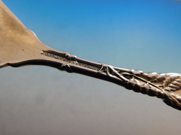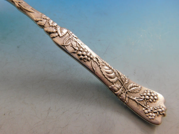 Stunning sterling silver Pudding Serving Spoon measuring 9 1/2" in the pattern Vine by Tiffany and Co. Vine is a muilti-motif pattern circa 1872 and has become very scarce on the market. This server features a raspberry motif on the handle that leads to the fluted serving area. It is not monogrammed and is in excellent condition.