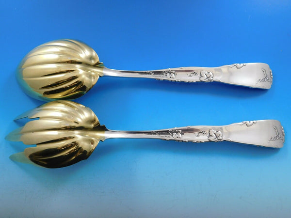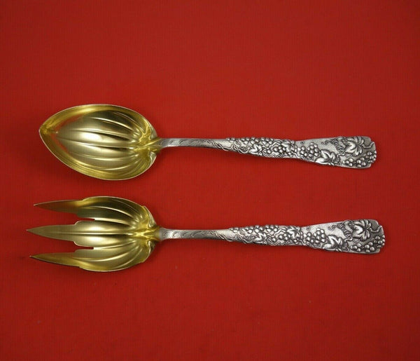 Sterling silver Salad Serving Set 2-Piece Gold Washed with Grapes, Pointed, 10" in the multi-motif pattern Vine by Tiffany and Co. It is not monogrammed and is in excellent condition.