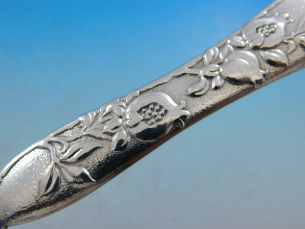 Vine was first introduced by Tiffany in the year 1872. Its innovative multi-motif design is in the Japanese style, in aesthetic taste, and is attributed to chief Tiffany designer, Edward C. Moore. The motifs depicted in Vine include various fruits, vegetables, flowers, and one grain (wheat). This rare and highly collected pattern is sometimes referred to as " Fruits and Flowers" .