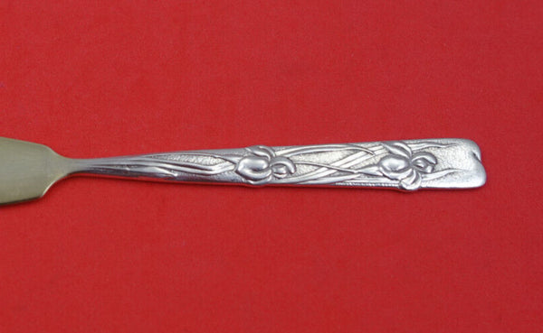 Sterling silver Flat Handle Butter Spreader with gold washed blade and Iris motif