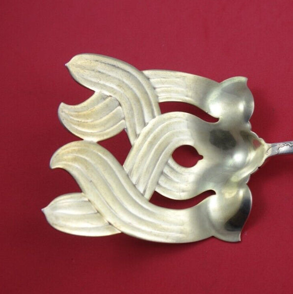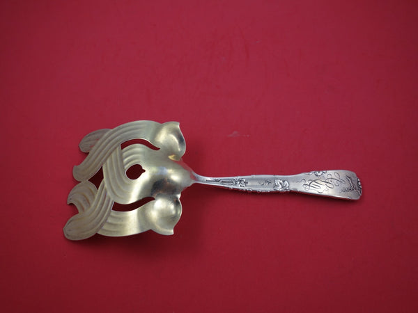Sterling silver Asparagus Serving Fork with gold-washed cross tines, 9 3/4", with Grapevine motif in the pattern Vine by Tiffany and Co. It is monogrammed on the reverse and is in good vintage condition.