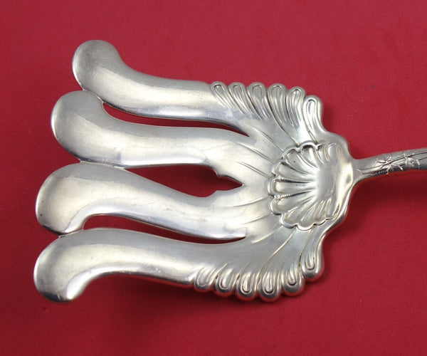 Exceedingly rare Sterling silver Asparagus Serving Fork with loop style tines 9 3/4", with Peapod