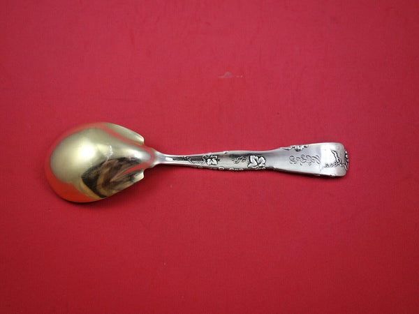 silver Berry Spoon 9 1/2" with pointed gold-washed bowl with Grapevine motif in the