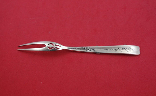 Sterling silver Bon Bon Fork 2-tine pierced, 5 1/4", with Iris motif handle in the pattern Vine by Tiffany and Co. It is monogrammed on the reverse and is in excellent vintage condition.