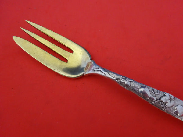 silver Caviar Fork with gold washed tines with gourds motif 6" in the pattern Vine By