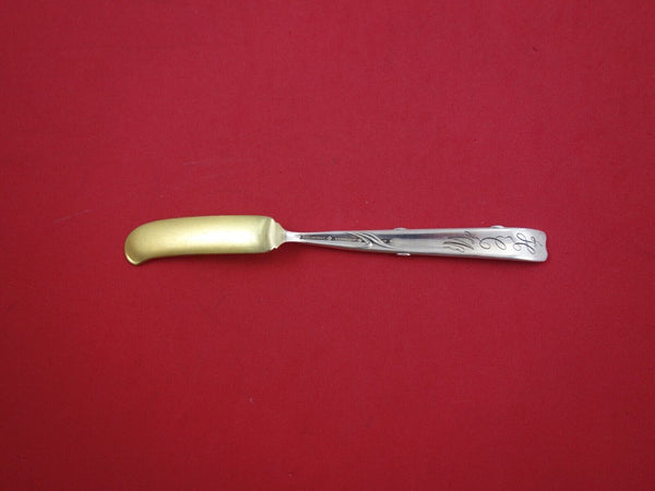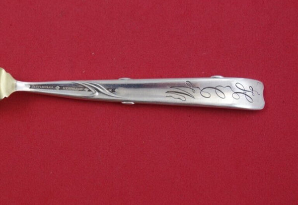 Rare Sterling silver Caviar Knife, gold-washed, with Iris motif 5 1/4" in the pattern Vine by Tiffany and Co. It is monogrammed on the reverse (monos vary) and is in excellent vintage condition.