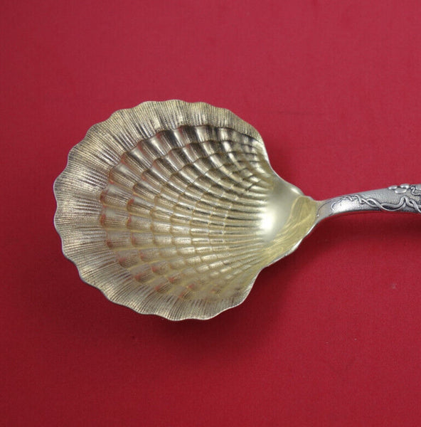 silver Berry Spoon with gold-washed clam shell bowl 9", with Grapevine motif handle in the