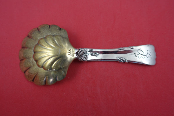 Sterling silver Nut Spoon with faint gold wash and solid shell shaped bowl, 5 1/4", with raspberry motif handle in the pattern Vine by Tiffany and Co. It is monogrammed as well as numbered 752 and is in excellent vintage condition.