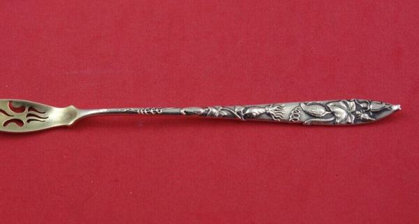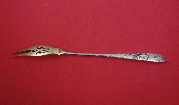 Sterling silver Pickle / Olive Fork gold-washed, pierced, 6 1/4", with Squash motif handle, in the pattern Vine by Tiffany and Co. It is monogrammed "R" on the reverse and is in excellent vintage condition.