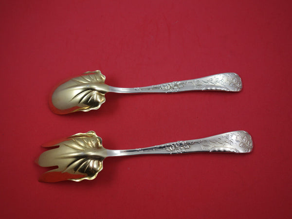 Sterling silver Salad Set 2-pc with gold-washed leaf form bowl/tines 10", with Peapod