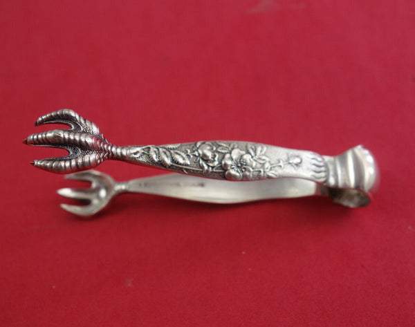 silver Tete a Tete Sugar Tongs with Wild Rose motif and claw tines, 3 1/8" in the pattern Vine by Tiffany and Co. It is monogrammed on