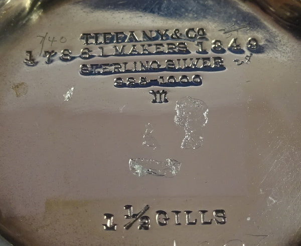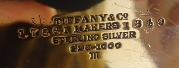 Windham by Tiffany and Co sterling silver sugar and creamer 2-piece set. Both pieces are marked with #17861-1849 with date mark for 1907-47. The sugar bowl measures 3 3/4" x 5 1/4" and it weighs 8.7 ozt., and the creamer is 4 1/2" x 3 3/4" and it weighs 7.3 ozt. This set is not monogrammed and is in excellent condition.