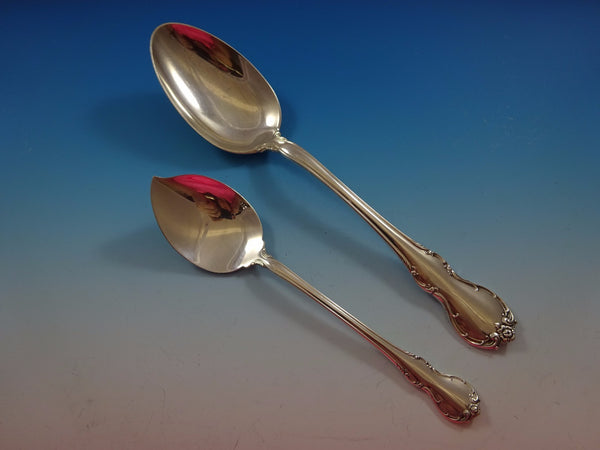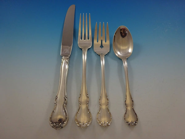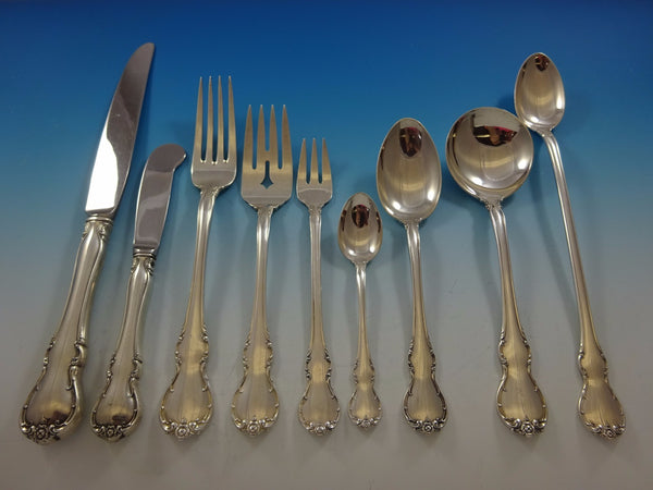 FRENCH PROVINCIAL BY TOWLE sterling silver Flatware set, 118 pieces. This set includes:12 Knives, 8 7/8" 12 Forks, 7 1/8" 12 Salad Forks, 6 1/4" 12 Teaspoons, 5 7/8" 12 Cream Soup Spoons, 6 1/4" 12 Hollow Handle Butter Spreaders, 6" 12 Cocktail Forks, 5 5/8" 12 Iced Tea Spoons, 8" 12 Demitasse Spoons, 4 1/4" 1 Gravy Ladle, 6 3/4" 1 Serving Spoon, 8 1/2" 1 Pickle Fork, 3-tine, 6" 1 Lemon Fork, 5 1/2" 1 Cake Server, 9 7/8" 1 Sauce Ladle, 5 5/8" 1 Jelly Server, 6 1/2" 1 Steak Carving Set, 2-pc, Knife 10" 1 Cheese Server, 7 1/4" Includes bonus brand new storage chest - styles vary.
