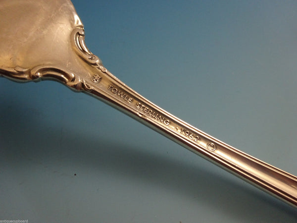 "LEGATO" BY TOWLE sterling silver flatware set, 82 pieces. This set includes:12 KNIVES, 9 1/8" 12 FORKS, 7 1/2" 12 SALAD FORKS, 6 1/2" 12 TEASPOONS, 6" 12 PLACE SOUP SPOONS, 6 1/2" 12 HOLLOW HANDLE BUTTER SPREADERS, 6 1/2" 1 GRAVY LADLE, 6 1/2" 1 SERVING SPOON, 8 1/2" 1 PIERCED SERVING SPOON, 8 1/2" 1 COLD MEAT FORK, 9" 1 SUGAR SPOON, 5 7/8" 1 HOLLOW HANDLE MASTER BUTTER, 7" 1 LEMON FORK, 5 3/8" 1 TOMATO SERVER, 7 1/2" 1 PIE SERVER W/STAINLESS BLADE, 11" 1 SAUCE LADLE, 5 1/4" Includes bonus brand new storage chest - styles vary.