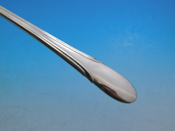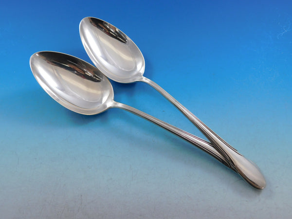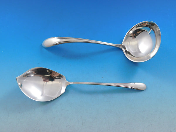 Dinner Size Symphony by Towle sterling silver Flatware set, 85 pieces. This Art Deco set includes:8 Dinner Size Knives, 9 3/4" 8 Dinner Size Forks, 7 7/8" 8 Salad Forks, 6 1/2" 8 Teaspoons, 6 1/8" 8 Flat Handle Butter Spreaders, 6" 8 Cocktail Forks, 5 3/4" 8 Iced Tea Spoons, 8 1/4" 8 Bouillon Soup Spoons, 5" 8 Demitasse Spoons, 4 1/4" 1 Gravy Ladle, 6 1/2" 2 Serving Spoons, 8 5/8" 1 Cold Meat Fork, 8" 1 Sugar Spoon, 5 7/8" 1 Flat Handle Master Butter, 7" 1 Pickle Fork, 6" 1 Tomato Server, 7 5/8" 1 Nut Spoon, 5" 1 Jelly Server, 6 5/8" 1 Steak Carving Set, 2-pc, 10" 1 Berry Spoon all-sterling, 8"