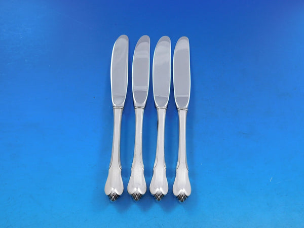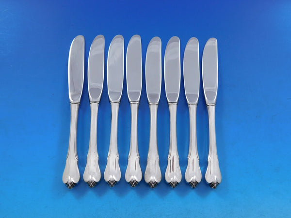 Set of 12 sterling silver hollow handle Butter Spreaders with stainless modern blades 6 1/8" in the pattern Grand Colonial by Wallace. They are not monogrammed and are in excellent condition.