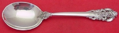 Sterling Silver Cream Soup Spoon 6" in the pattern Grande Baroque By Wallace. It is not monogrammed and is in excellent condition.