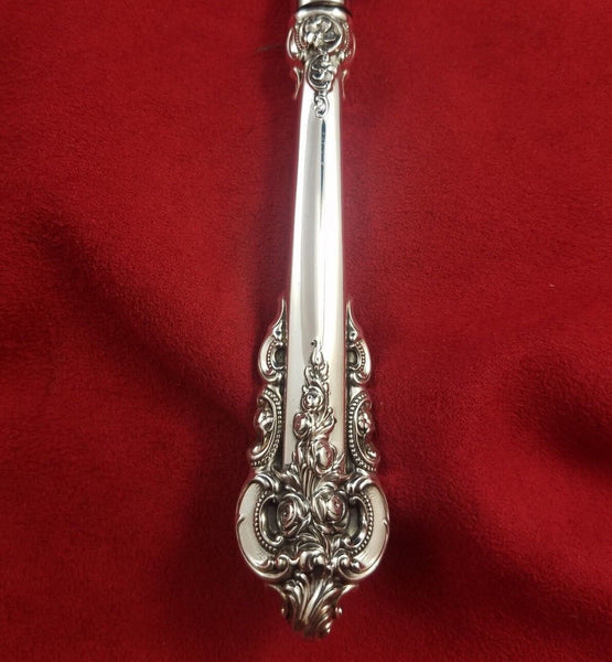 Add decadent design to your sterling silver tableware collection with our custom made sterling silver hollow handle with stainless Fish Serving Set in the pattern Grande Baroque by Wallace. This set includes two versatile serving utensils:One Large Server, 11 1/4" One Large Serving Fork, 10 1/4" This indulgent fish serving set is ideal for anyone that loves to entertain. It is not monogrammed and is beautifully professionally polished.