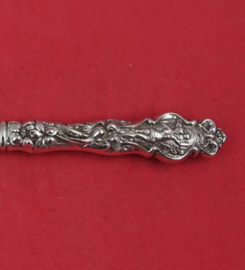 Sterling silver hollow handle with silverplate serrated blade Citrus Knife 7 3/4" in the pattern Irian by Wallace. It is not monogrammed and is in good estate condition.