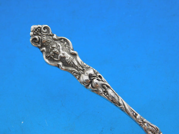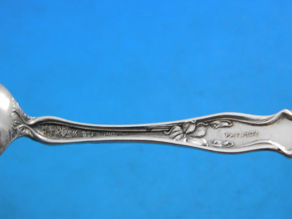 Sterling silver Demitasse Spoon 3 7/8" in the pattern Irian by Wallace. It is monogrammed on the reverse (monos vary) and is in excellent condition.