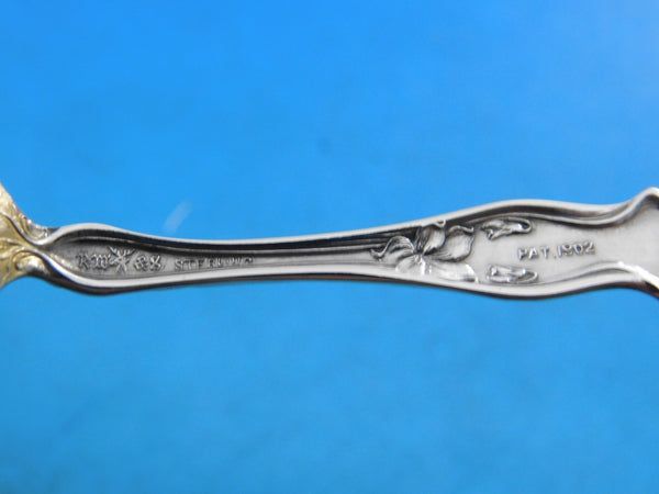Sterling silver Demitasse Spoon Gold Washed 3 7/8" in the pattern Irian by Wallace. It is not monogrammed and is in excellent condition.