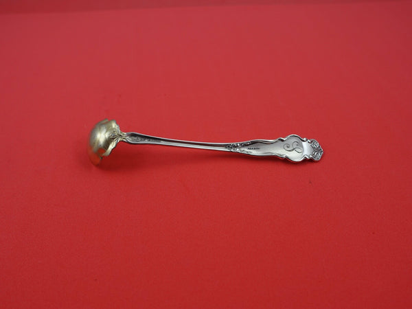 Sterling silver Original Mustard Ladle, gold washed 4 5/8" in the pattern Irian by Wallace. It is monogrammed (monos vary) and is in excellent condition.