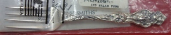 Sterling silver new in factory sleeve Salad Fork 6 1/2" in the pattern Irian by Wallace. It is in excellent condition.