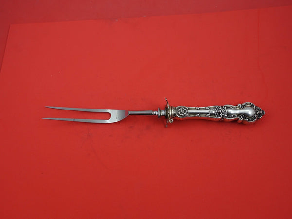 Sterling silver hollow handle with stainless blade Roast Carving Fork 11 1/4" in the pattern Meadow Rose by Wallace. It is not monogrammed and is in excellent condition.