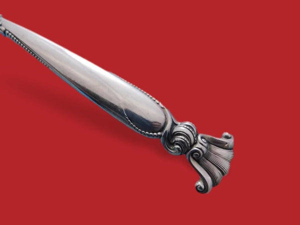 Custom made pieces are made from an original piece in your pattern that are not otherwise available or difficult to find on the market, especially in discontinued patterns. Hollow handle items are made from an original handle in your pattern with a new stainless or silver-plated implement. Then the piece is hand-finished by a highly skilled silversmith in the USA. All custom orders are made-to-order and usually ship within 5-7 business days. Now that many sterling patterns have been discontinued, custom pieces have become a staple in the sterling silver industry and are widely offered by mainstream sterling flatware dealers.