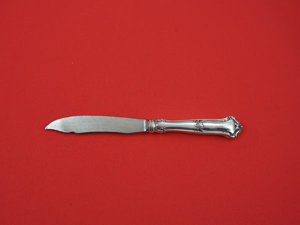 Sterling silver Fruit Knife, hollow handle with silver-plated blade 6 1/2" in the pattern Saxon by Wallace. It is monogrammed (monos vary) and has some edge wear to blade.