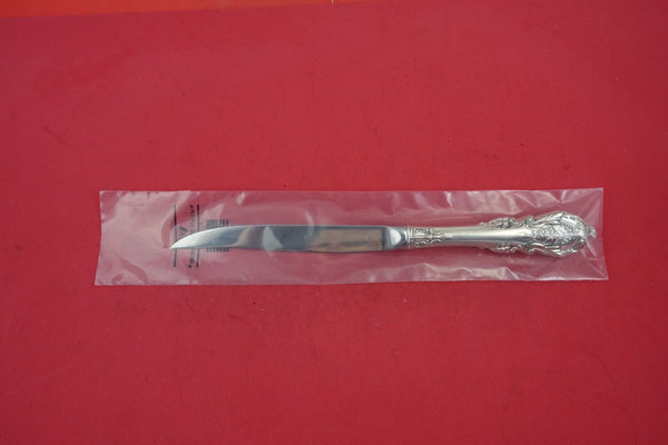 Sterling silver hollow handle with stainless blade Steak Knife, new in factory sleeve 8 3/4" in the pattern Sir Christopher by Wallace. It is not monogrammed and is in excellent condition.
