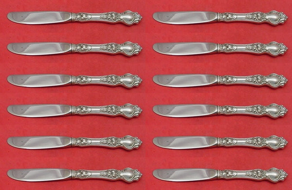 Set of 8 sterling silver hollow handle Individual Butter Spreaders with stainless modern blades 6 3/8" in the pattern Violet by Wallace. They are not monogrammed and are in excellent condition.