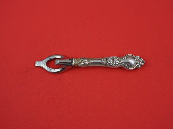 Violet by Wallace sterling silver Bottle Opener, hollow handle with plated implement 6". It is not monogrammed and is in as-is condition with some wear/rust to the implement, as shown.