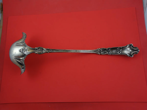 Silver Plate Punch Ladle, fancy grapes and vines with double spouts 15 3/4" in the pattern Wallace #4 by Wallace. It is not monogrammed and is in excellent condition.