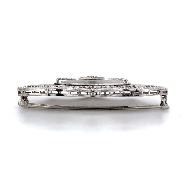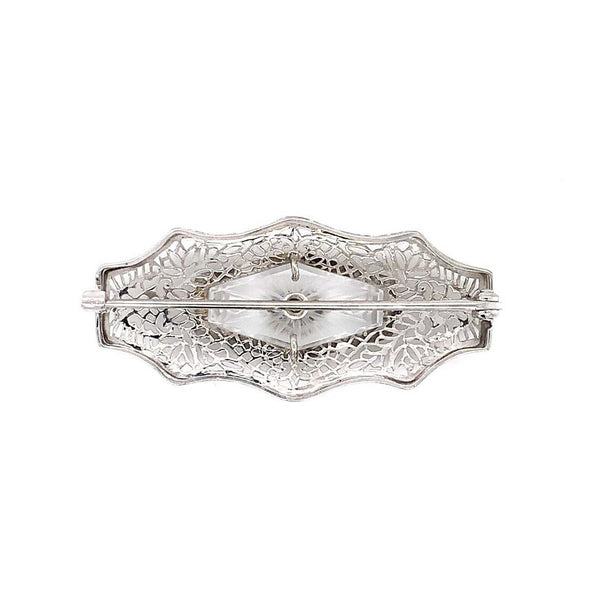 10k White Gold Genuine Natural Rock Crystal Quartz Diamond Filigree Pin (#J5597)