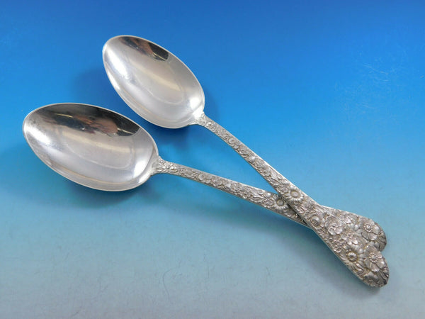 Exceptional Dinner Size Bridal Bouquet by Alvin circa 1932 floral repoussed sterling silver Flatware set - 92 pieces. This set includes:12 Dinner Size Knives, 9 1/2" 12 Dinner Size Forks, 7 3/4"