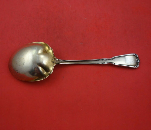 Sterling silver Berry Spoon Gold Washed 9" in the pattern Chambord by Reed and Barton. It is not monogrammed and is in excellent condition.