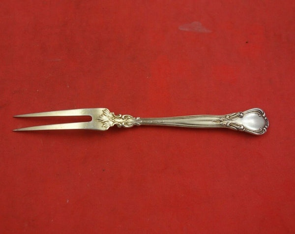 Sterling silver Strawberry Fork 2-Tine 4 5/8" (lightly gold washed) in the pattern Chantilly by Birks. It is not monogrammed and is in good vintage condition.