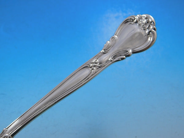Finely crafted with the graceful elegance associated with 18th Century France, this stately pattern was first introduced in 1895. The intricate design is embellished with a cascade of deeply carved borders showcasing a slender raised central panel along the handle and a more substantial open panel that can be monogrammed near the tip, which is crowned with a delicate fleur de lis. A stunning addition to traditional and formal interiors, this regal pattern will turn every meal into an event. This is one of the most popular silver patterns of all time!