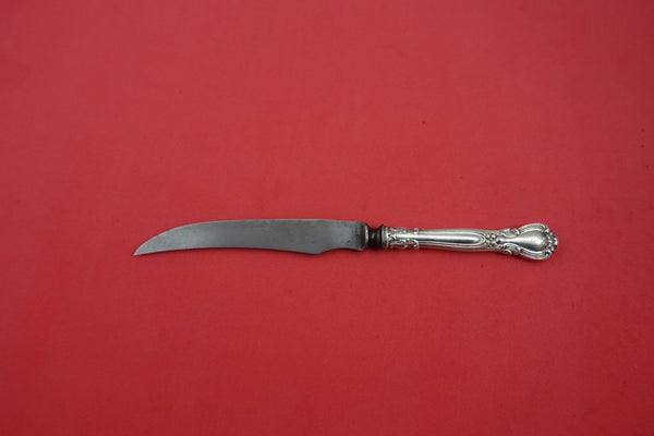 Sterling silver Game Knife with carbon steel 8 1/8" in the pattern Chantilly by Gorham. It is monogrammed (monos vary) and is in good condition with blade in as is condition.