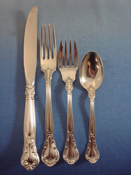 CHANTILLY BY GORHAM estate sterling silver 4-Piece PLACE SIZE Place Setting. This setting includes:1 PLACE SIZE KNIFE, 9 1/4" 1 PLACE SIZE FORK, 7 1/2" 1 SALAD FORK, 6 1/2" 1 TEASPOON, 5 7/8"