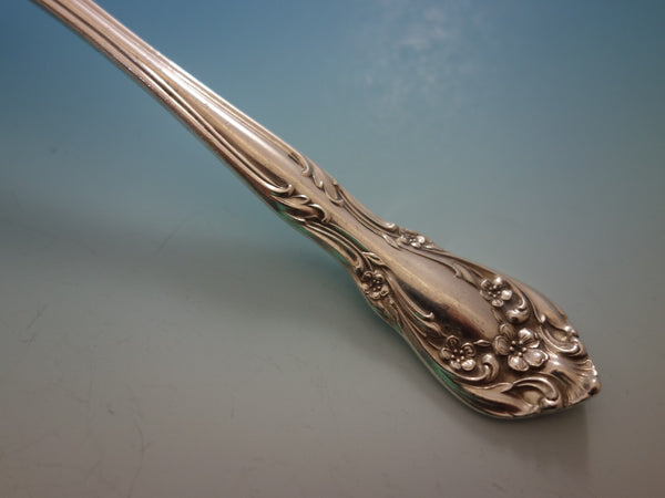 Chateau Rose by Alvin sterling silver Flatware set, 74 pieces. This set includes:8 Dinner Knives, 9 1/2" 8 Dinner Forks, 7 7/8" 8 Luncheon Knives, 8 7/8" 8 Luncheon Forks, 7 1/4" 8 Salad Forks, 6 1/2" 8 Teaspoons, 6" 8 Cream Soup Spoons, 6 1/4" 8 Hollow Handle Butter Spreaders, 6 1/4" 1 Gravy Ladle, 6 1/8" 2 Serving Spoons, 8 1/2" 2 Cold Meat Forks, 7 1/4" 1 Sugar Spoon, 6" 1 Flat Handle Master Butter, 7 1/8" 1 Pickle Fork, 5 3/4" 1 Jelly Server, 6 1/8" 1 Sugar Tongs, 3 7/8" Includes bonus brand new storage chest - styles vary.