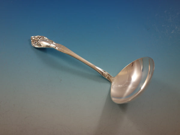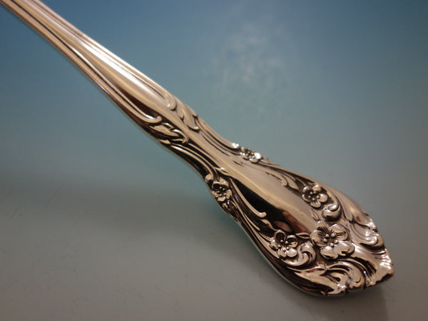 Dinner Size Chateau Rose by Alvin sterling silver Flatware set, 64 pieces. This set includes:8 Dinner Size Knives, 9 1/2" 8 Dinner Size Forks, 7 7/8" 8 Salad Forks, 6 1/2" 8 Teaspoons, 6" 8 Flat Handle Butter Spreaders, 5 3/4" 8 Iced Tea Spoons, 7 1/2" 8 Demitasse Spoons, 4 1/4" 1 Gravy Ladle, 6 1/8" 1 Cold Meat Fork, 7 3/8" 1 Pickle Fork, 5 3/4" 1 Cake Server w/stainless blade, 9 1/2" 1 Nut Spoon, 4 7/8" 1 Jelly Server, 6 1/8" 1 Steak Carving Set, 2-pc, 10" Includes bonus brand new storage chest - styles vary.