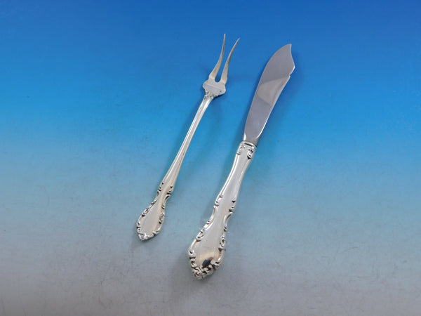 8 Knives, 9" 8 Forks, 7 3/8" 8 Salad Forks, 6 3/4" 8 Teaspoons, 6" 8 Place Soup Spoons, 6 1/2" 8 Hollow Handle Butter Spreaders, 6 1/2" 1 Gravy Ladle, 7 1/8" 1 Serving Spoon, 8 1/2" 1 Cold Meat Fork, 8 5/8" 1 Sugar Spoon, 6 1/8" 1 Hollow Handle Master Butter, 7" 1 Pickle Fork, 5 7/8" 1 Pie Server w/stainless blade, 10 1/2" 1 Nut Spoon, 5" Includes bonus brand new storage chest - styles vary.