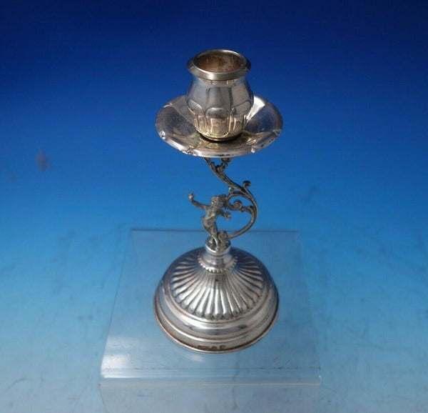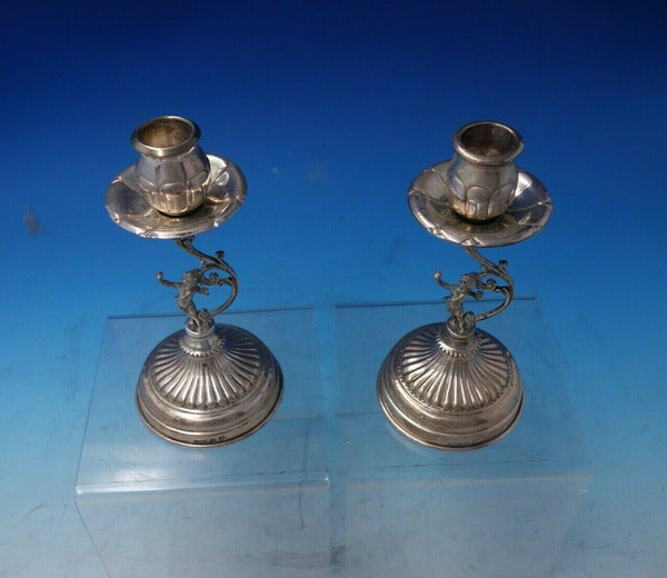 Beautiful Cherub Austrian sterling silver candlestick pair featuring figural cherubs, circa 1910 (maker unknown). The candlesticks measure 6 1/2" tall x 3" (base) and together weigh 7.1 troy ounces. They are not monogrammed and are in good vintage condition. Lovely!