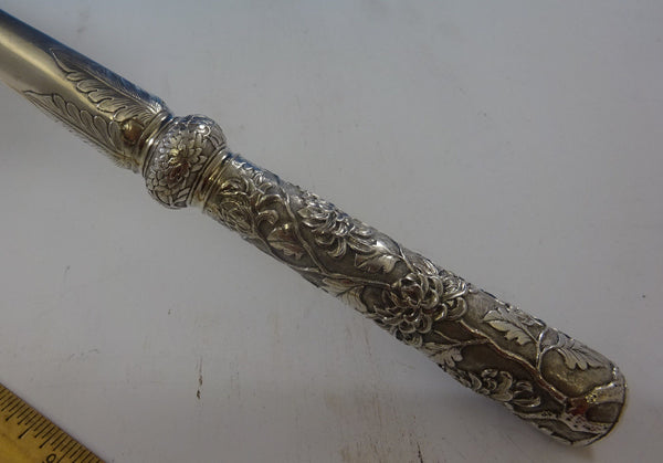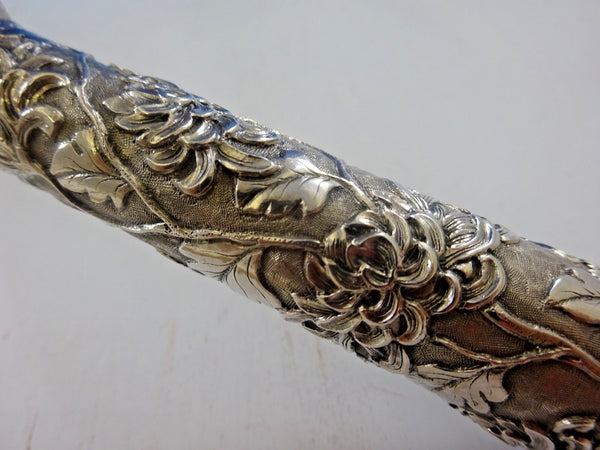 Chinese Sterling Silver Punch Ladle Hand Made Chrysanthemums 17 1/2" Hung Chong