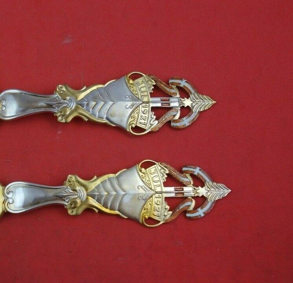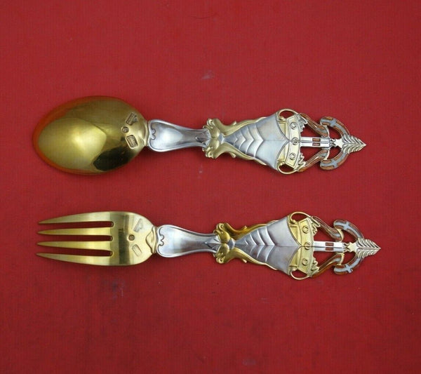 Sterling silver Fork and Spoon Set 2-Piece 1921 "Christmas Boat" 6 1/2" in the pattern Christmas by A. Michelsen. This set is vermeil (completely gold washed) and was designed by Kay Bojesen. It is not monogrammed and is in excellent condition.