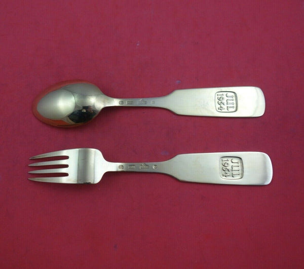 Sterling silver Fork and Spoon Set 2-Piece 1954 "Cornets" 6 1/2" in the pattern Christmas by A. Michelsen. This set is vermeil (completely gold washed) and was designed by Soren Sass. It is not monogrammed and is in excellent condition.