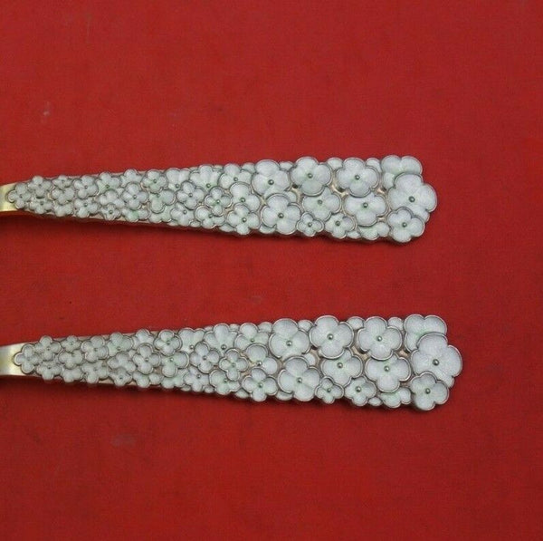Sterling silver Fork and Spoon Set 2-Piece 1956 "Snow Flowers" 6 1/2" in the pattern Christmas by A. Michelsen. This set is vermeil (completely gold washed) and was designed by Jorgen Michelsen. It is not monogrammed and is in excellent condition.